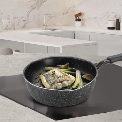 Zahvaljujući dubini od 7,5 cm lako ćete pripremiti gulaš, soté, tjesteninu i pirjano povrće. Dvostruki izljevi omogućuju precizno točenje umaka i juha bez prolijevanja. Tava je prikladna za sve vrste štednjaka, uključujući indukciju, a njezina ergonomska ručka osigurava udobno i sigurno rukovanje.