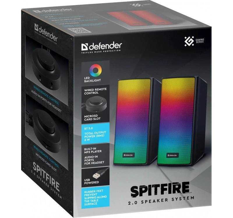Uživajte u čistom stereo zvuku u elegantnom izdanju. Zvučnici DEFENDER Spitfire 2.0 kombiniraju stabilni Bluetooth 5.2 s niskom potrošnjom, jednostavno povezivanje putem USB napajanja i efektne LED elemente koji oživljavaju svaki gaming i radni set‑up.