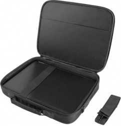 Promišljena unutrašnjost lako prima punjač i dodatke, dok je prednji džep s patentnim zatvaračem idealan za dokumente i sitnice. Izdržljiv tekstilni materijal s visokom otpornošću na habanje i povećanom zaštitom od vlage štiti sadržaj u zahtjevnim uvjetima. Udobnost osiguravaju podesivi rameni remen i udobna ručka, bezvremenski crni izgled s diskretnim logotipom naglašava profesionalni stil.