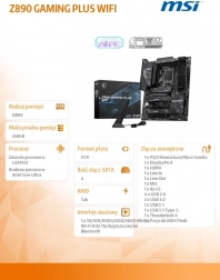 MSI Z890 Gaming Plus WiFi opremljena je komponentama najviše kvalitete koje jamče dugotrajnost i visoku izvedbu. Ploča podržava LGA 1851 Intel Core Ultra procesore, nudi dvokanalnu podršku DDR5 memorije s overklokom do 9200+ MT/s.