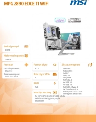 Gaming matična ploča MSI MPG Z890 EDGE TI WIFI dizajnirana je za entuzijaste bijelih PC računala s Killer Wi‑Fi 7, 5G LAN, Thunderbolt 4 i kompatibilnošću s PCIe 5.0. Idealna opcija za procesore Intel Core Ultra.
