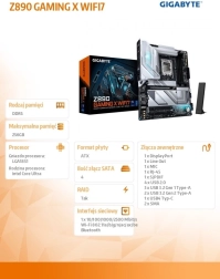 Gigabyte Z890 Gaming X WiFi7 je vrhunska matična ploča dizajnirana da ponudi izvrsne performanse i najsuvremenije značajke za gaming i profesionalnu upotrebu. Zahvaljujući podršci za Intel Core Ultra procesore i opsežnu povezivost poput PCIe 5.0, Wi‑Fi 7 i USB4 Type‑C, idealan je izbor za one koji traže nenadmašnu brzinu i pouzdanost.
