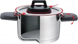 Njegovo višeslojno dno koje akumulira toplinu jamči ravnomjernu raspodjelu temperature, što dovodi do učinkovitog kuhanja. Prednost je mogućnost pranja u perilici posuđa, što olakšava održavanje lonca.