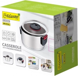 Lonac Maestro s promjerom od 20 cm nudi visokokvalitetni nehrđajući čelik, koji ne samo da jamči dugotrajnu upotrebljivost, već također elegantan dizajn, savršeno uklopljiv u svaku kuhinju. Zahvaljujući višeslojnom dnu, lonac se brzo i ravnomjerno zagrijava, što pridonosi učinkovitijem kuhanju i uštedi energije. Poklopac s otvorom za ispuštanje pare omogućuje praćenje procesa kuhanja bez gubitka topline<\u002fstrong>.<\u002fp> Posebna značajka ovog lonca su skladajuće ručke, koje štede prostor i olakšavaju skladištenje. Zahvaljujući kompatibilnosti sa svim vrstama ploča, uključujući indukcijske, lonac je svestrani pomoćnik u svakoj kuhinji. Unutarnja mjera omogućuje precizno mjerenje volumena tekućina, što je idealno za pripremu raznih jela.<\u002fp><\u002fdiv>Specifikacije<\u002fh2>