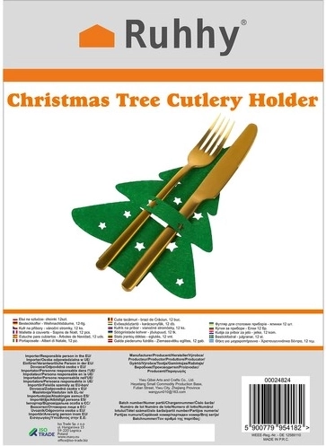 Božićne futrole za pribor od filca u obliku božićnih drvaca idealan su dodatak za blagdanske ručkove i večere. Ovaj set sadrži 12 komada, dovoljno za cijelu obitelj i goste.