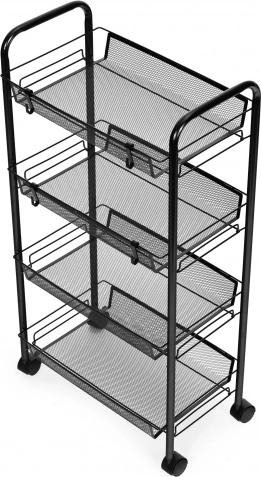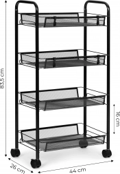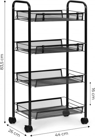 Opremljena četirima prostranim policama nudi dovoljno mjesta za pohranu raznih predmeta, kao što su knjige, kuhinjski dodaci, alati ili dekoracije.