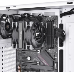 Thermaltake ToughAir 510 je pouzdan toranjski hladnjak za CPU dizajniran za stabilne temperature i nisku razinu buke. Kombinacija dva 120 mm ventilatora u push-pull konfiguraciji i četiri bakrene heatpipe cijevi od 6 mm s izravnim kontaktom učinkovito odvodi toplinu s procesora i osigurava optimalne performanse čak i pri zahtjevnom opterećenju.