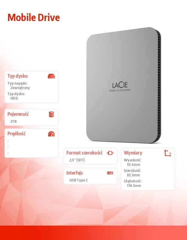 Uživajte u premium dizajnu i velikom kapacitetu s LaCie Mobile Drive. Razvijen u saradnji s dizajnerom Neilom Poultonom, ovaj disk
