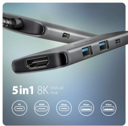 Hub je izrađen od izdržljivog aluminijskog kućišta za bolje hlađenje. Funkcije Plug And Play i Hot Plug omogućuju jednostavno povezivanje i odspajanje uređaja bez složene instalacije. Moguće je i povezivanje s telefonom putem USB-C, što omogućuje spajanje tipkovnice, miša ili monitora.