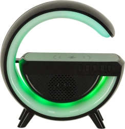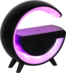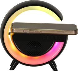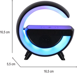 Uživajte u udobnosti svih funkcija u jednom uređaju. Kompaktna LED lampica RGB pristaje svakom domu zahvaljujući svojoj crnoj, elegantnoj boji. Opremljena je bežičnim punjenjem, što znači da svoj telefon možete puniti pomoću Qi tehnologije lako i bez kabela.