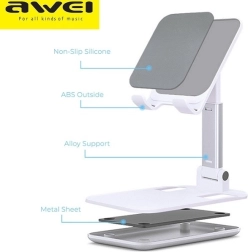 AWEI X11 je praktičan stolni držač koji kombinira elegantan dizajn s visokom funkcionalnošću. Kvalitetni materijali (PC, ABS i aluminijska legura) brinu se za izdržljivost i stabilnost, dok silikonski elementi štite vaš uređaj od ogrebotina i osiguravaju čvrsto prianjanje.