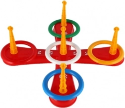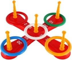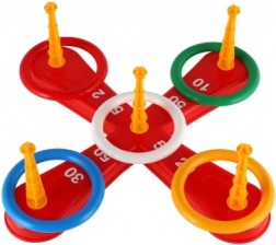 Ova igra bacanja križeva s krugovima savršena je kombinacija zabave i obrazovanja. Sjajan način za vježbanje koordinacije ruku i očiju djece dok se igraju. Igra uključuje križnu bazu s pet postolja i šarene krugove koje je potrebno bacati na postolja kako biste skupili bodove.