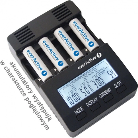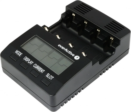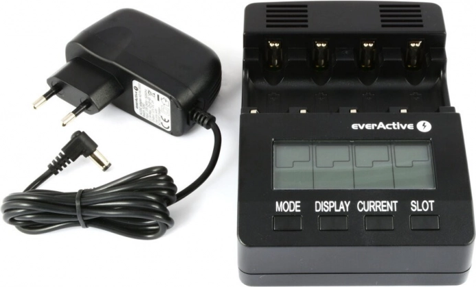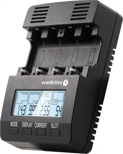 EVERACTIVE NC-3000 je pametni punjač s naprednom dijagnostikom za Ni-MH/Ni-Cd akumulatore. Svaki od četiri utora upravlja se neovisno, pa možete istodobno puniti različite tipove i kapacitete. Veliki pozadinski osvijetljeni LCD prikazuje napon, struju, vrijeme i kapacitet, što olakšava nadzor cijelog procesa.