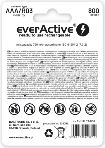 Set od dvije punjive baterije AAA (R03) s kapacitetom 800 mAh u tehnologiji Ready To Use za trenutačnu upotrebu odmah nakon raspakiravanja. Serija Silver Line kombinira visok kapacitet, pouzdan rad i povoljnu cijenu – idealno za svakodnevne uređaje i dugotrajnu upotrebu.
