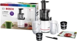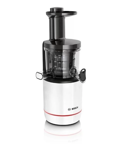 BOSCH MESM500W je pouzdan spori sokovnik osmišljen za zdrave i ukusne sokove svaki dan. Nježno prešanje pri niskoj brzini očuva vitamine, minerale i prirodnu boju voća i povrća. Zahvaljujući zatvorivom izljevnom otvoru DripStop radna površina ostaje čista, bez kapljica.