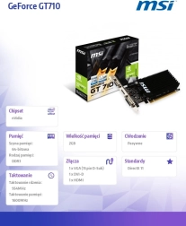 MSI GeForce GT 710 2GB savršen je izbor za korisnike koji traže kvalitetnu grafičku karticu za kućno kino ili uredsku upotrebu. Zahvaljujući ugrađenoj GDDR3 memoriji i 64-bitnoj memorijskoj sabirnici, možete računati na gladak rad pri uobičajenim uredskim zadacima i reprodukciji videa u visokoj rezoluciji.