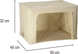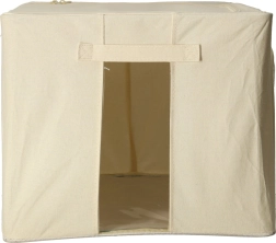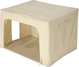 Ovaj kremasti tekstilni organizator idealan je za pernate poplune, jastuke, deke, ručnike i sezonsku odjeću. Zahvaljujući prednjem otvoru s patentnim zatvaračem stvari možete udobno izvaditi čak i s donjih polica bez potrebe za pomicanjem kutije. Prozirna prednja strana omogućuje da odmah vidite što je unutra.