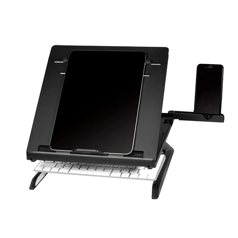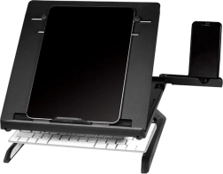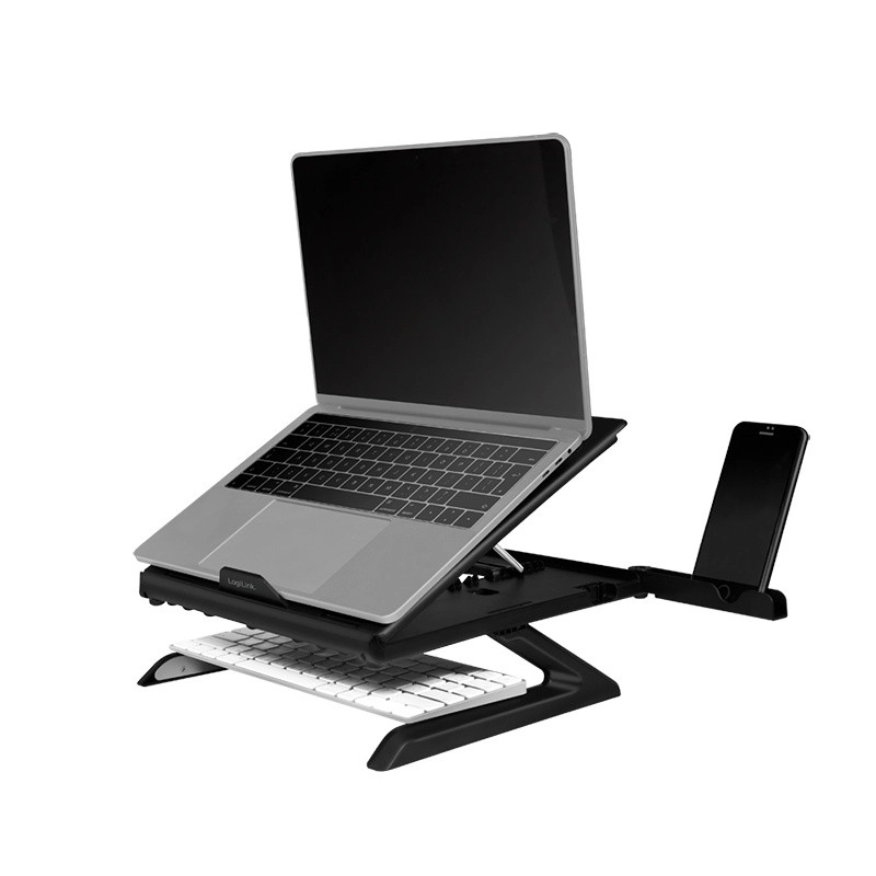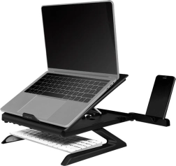 Stalak za notebook s držačem za pametni telefon idealno je rješenje za poboljšanje radne udobnosti. Ovaj stalak omogućuje podizanje ekrana notebooka na razinu očiju, što poboljšava kut gledanja i smanjuje napetost u vratu.