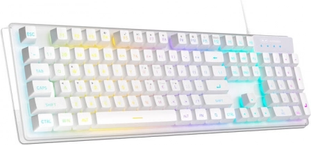 104 tipke, anti-ghosting, numerički dio i multimedijske tipke. Jarko RGB osvjetljenje povećava čitljivost, otpornost na prolijevanje i protuklizne nožice osiguravaju stabilnost pri igranju.
