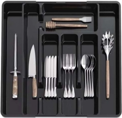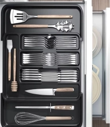 Maksimizirajte prostor u ladici zahvaljujući pametnom rastezljivom dizajnu. Organizator se glatko prilagođava različitim širinama ladica, tako da će pribor, noževi i kuhače uvijek biti uredno posloženi. Izdržljivo PP izvedenje jamči dug vijek trajanja, otpornost na ogrebotine i jednostavno održavanje.