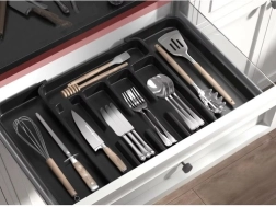 U osnovnom položaju nudi 5 pretinaca, a nakon proširenja do 7, pa dobivate više prostora za pribor i kuhinjski alat. Glatku površinu dovoljno je obrisati vlažnom krpom – brzo i higijenski.