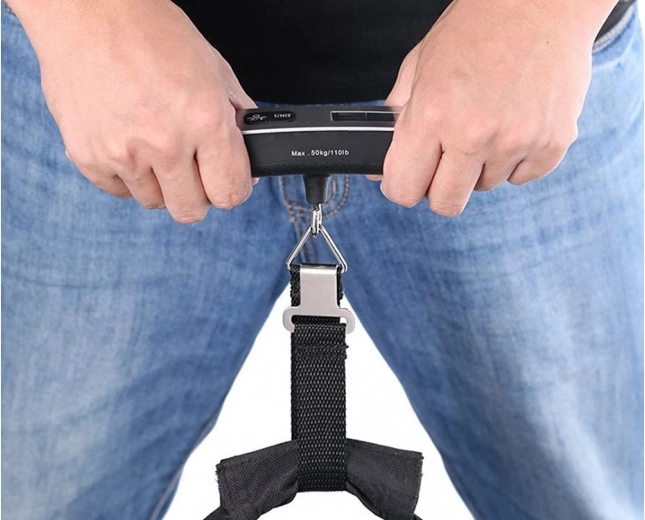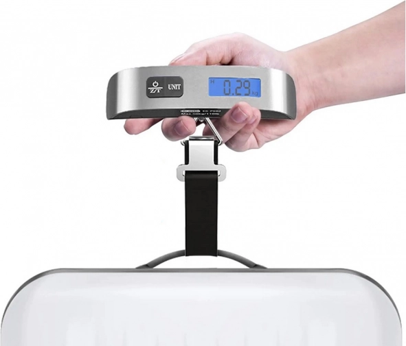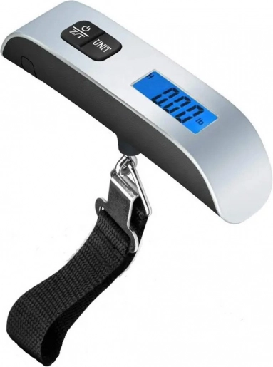 Kompaktna digitalna vaga za prtljagu s maksimalnim opterećenjem od 50 kg pomaže vam izbjeći preteške kofere u zračnoj luci. Nudi visokoprecizno mjerenje s razlučivošću od 10 g, pozadinski osvijetljen LCD zaslon, funkciju TARE, HOLD i automatsko isključivanje radi uštede baterije. Mjeri u kg i lb, a tu je i indikacija ambijentalne temperature.