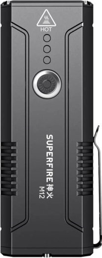 Svjetiljka Superfire M12 opremljena je sa šest svjetlosnih načina rada za različite uvjete. Nudi slabo, srednje i jako osvjetljenje, zajedno s Strobe i SOS načinima, koji su ključni u hitnim situacijama. Pomoću turbo funkcije, dostupne dvostrukim klikom, možete postići puni izlaz od 8 000 lumena.