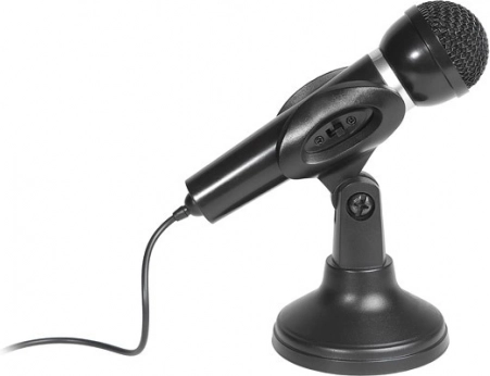 Dio kompleta je stabilno stolno postolje koje drži mikrofon na mjestu, a zahvaljujući odvojivoj konstrukciji možete ga u svakom trenutku uzeti u ruku – primjerice za karaoke ili moderiranje. Ugrađeni prekidač omogućuje trenutno utišavanje, dok plug & play osigurava bezbrižno spajanje bez upravljačkih programa.