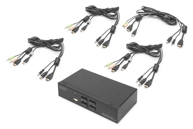 Upravljajte do četiri računala s jedne tipkovnice, miša i monitora uz KVM preklopnik s podrškom za 4K UHD 30 Hz, HDMI i dijeljeni USB. Nudi jednostavno prebacivanje tipkom ili tipkovničkom kraticom, prebacivanje zvuka (mikrofon/slušalice), prednji USB priključak za periferije i plug & play bez upravljačkih programa u robusnom metalnom kućištu.