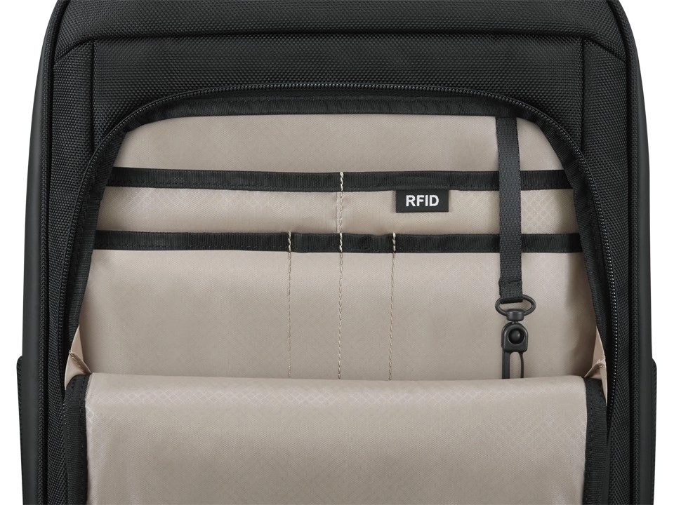 Dobro podstavljen pretinac za računalo prima prijenosnike s dijagonalom do 16", a zaseban podstavljeni umetnuti džep je veličine za prijenosnike s dijagonalom do 14"