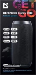 Uživajte u omiljenim playlistama s prijenosnim zvučnikom DEFENDER Enjoy S100 u elegantnoj crnoj boji. Zahvaljujući bežičnoj Bluetooth tehnologiji telefon ili tablet povezat ćete u trenu i slušati bez suvišnih kabela. Ugrađeni MP3 reproduktor i FM radio proširuju mogućnosti zabave kod kuće, na putovanjima i na otvorenom.