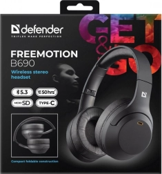 Stilske over‑ear slušalice DEFENDER Freemotion B690 u crnoj boji spajaju udobnost i čist zvuk za svaki dan. Meke naušnice i podstavljen obruč jamče ugodno nošenje i pri dugotrajnom slušanju, dok bežična veza putem Bluetootha donosi potpunu slobodu bez kabela.