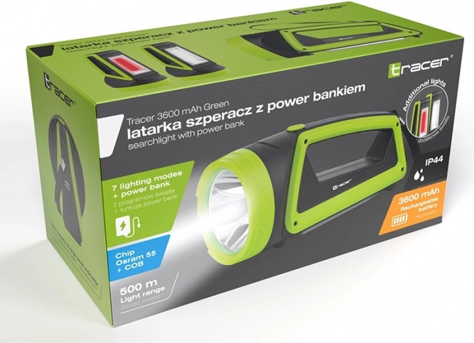 Svjetiljka Tracer idealan je izbor za sve vaše outdoor aktivnosti. Zahvaljujući sedam načina rada i funkciji power banka osigurava ne samo jasno osvjetljenje, već i mogućnost punjenja uređaja. Opremljena je vodootpornošću na razini IP44, što jamči zaštitu od prašine i vode. Domet daljinskog osvjetljenja do 500 metara i ugrađeni LED čip Osram pružaju visoku svjetlinu i pouzdanost.
