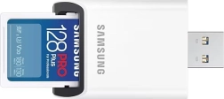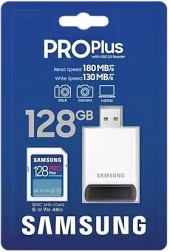 Profesionalna memorijska kartica SAMSUNG PRO Plus kapaciteta 128 GB s priloženim čitačem nudi brzinu čitanja do 180 MB/s i zapisivanja do 130 MB/s za glatki 4K video i brzo serijsko snimanje. Izdržljiva konstrukcija sa 7-strukom zaštitom i 10-godišnjim jamstvom idealna je za fotografe, kreatore sadržaja i profesionalce.