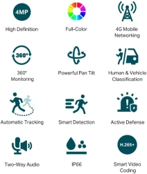 Izvrstan 4G prikaz u punoj boji s cjelodnevnim nadzorom, bez obzira na tamu. Zahvaljujući jednostavnoj instalaciji i 360° pokrivenosti, ova je kamera idealno rješenje za nadzor bez pristupa internetu.