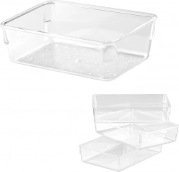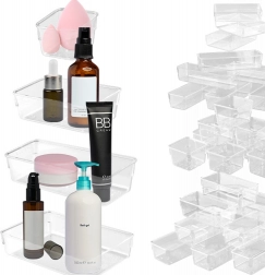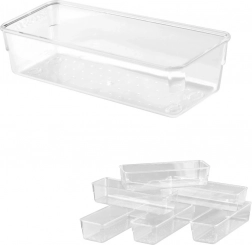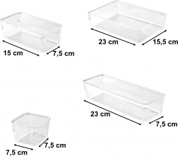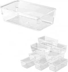 Ovaj višenamjenski set organizatora spaja čist dizajn i praktičnu funkcionalnost. Prozirna izvedba omogućuje trenutačan uvid u sadržaj, a zahvaljujući različitim veličinama lako prilagođavate raspored svakoj ladici, polici i radnoj površini.