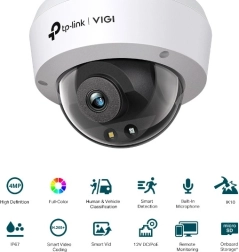 Kamera Vigi C240 nudi revolucionarno nadziranje s 4MP rezolucijom, koje osigurava oštre detalje čak i u potpunom mraku zahvaljujući LED osvjetljenju. Ova otporna na vandalizam i izdržljiva konstrukcija idealna je za zahtjevne uvjete, što jamči sigurnost bilo gdje i bilo kada.