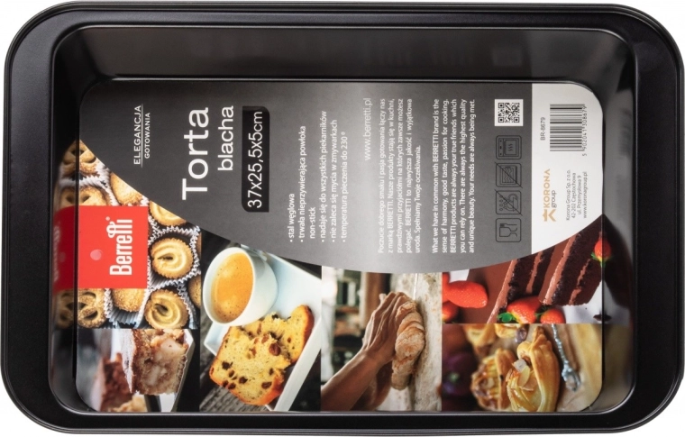 Pravokutni kalup za pečenje Berretti izrađen je od izdržljivog ugljičnog čelika, koji osigurava dugotrajnost i otpornost na deformacije. Površina s Non-Stick premazom osigurava da se tijesto ne lijepi, što uvelike olakšava vađenje gotovog kolača i naknadno čišćenje. Kalup može izdržati temperature do 230 °C, što omogućuje pečenje i na visokim temperaturama.