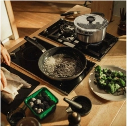 Trostruko dno osigurava ravnomjernu raspodjelu topline za učinkovito i dosljedno kuhanje.