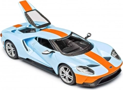Ovaj detaljno izrađen model Bburago unosi u vašu kolekciju legendarni Ford GT u atraktivnoj kombinaciji svijetloplave boje s narančastim trkaćim prugama. Zahvaljujući kvalitetnom die-cast metalu i preciznim proporcijama model djeluje vrlo realistično te će istaknuti svaku policu ili vitrinu.
