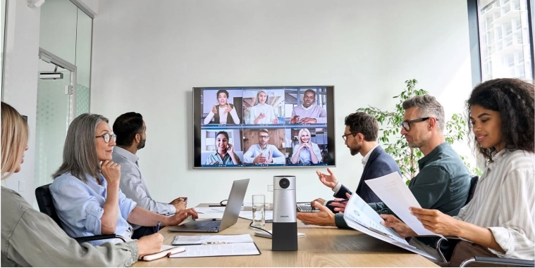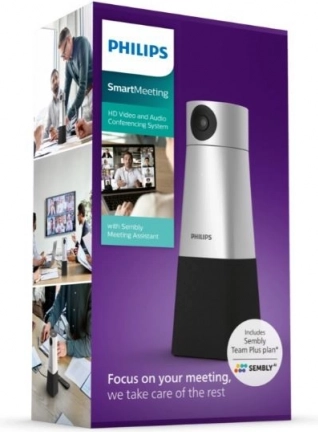 Philips SmartMeeting je cjelovito rješenje za HD audio i video konferencije s pomoću Sembly Meeting Assistant asistenta, koji se brine za automatske zapise, transkripcije i akcijske stavke. 4K kamera s praćenjem glasa i fleksibilnim pan/tilt/zoom kadrom prikazuje svakog sudionika u savršeno oštroj slici, dok 360° mikrofon s četiri elementa hvata govor na udaljenosti do 6 metara.