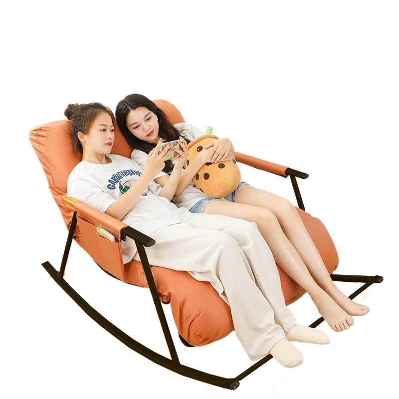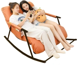 Dvostruka njihajuća fotelja s crnim metalnim postoljem - narančasta