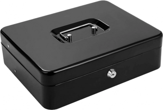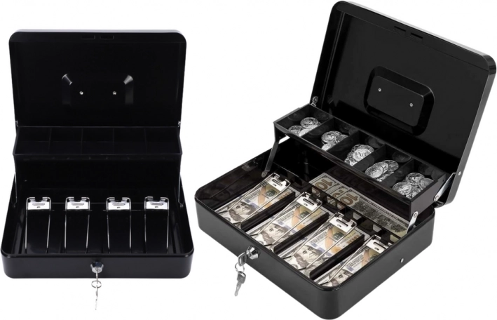 crna metalna blagajna za novčanice i kovanice