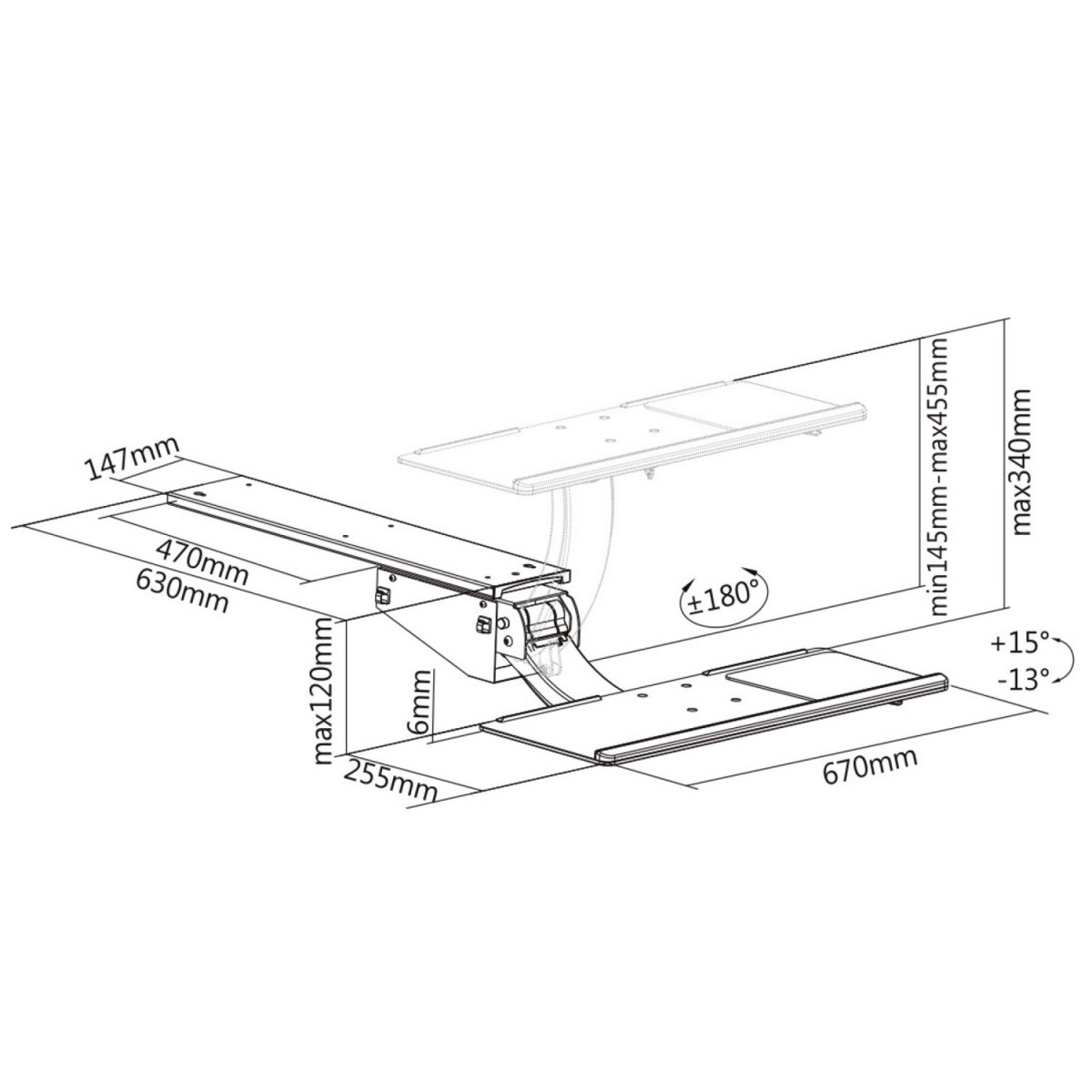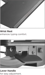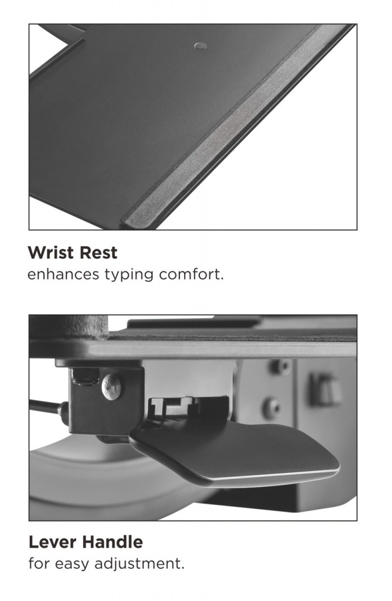 Kreirajte ergonomsko radno mjesto s podvjesnom policom za tipkovnicu koja se montira izravno ispod ploče stola. Zahvaljujući širokom rasponu podešavanja, lako prilagodite visinu, nagib i zakretanje tako da tipkanje bude udobno i pri sjedenju i pri stajanju te da se smanji napetost u ramenima i zapešćima.