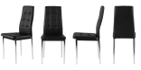 Ovaj set od četiri stolice je idealan izbor za moderne blagovaonice i dnevne sobe. Stolice u crnoj boji s elegantnim prošivanjem daju interijeru sofisticiran izgled. Imaju visoka, profilirana naslona i meko sjedalo od PU pjene, što osigurava izvanrednu udobnost.
