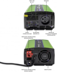 Pretvarač napona Qoltec služi ne samo kao pretvarač 12V u 230V, već i kao punjač akumulatora i UPS pomoćno napajanje. Povezan s akumulatorom osigurava stabilno napajanje priključenih uređaja. U slučaju nestanka električne energije automatski prelazi u način napajanja iz akumulatora. Zahvaljujući čistoj sinusoidi jamči sigurnost svim priključenim uređajima, što ga čini idealnim za putovanja ili situacije bez dostupne utičnice.