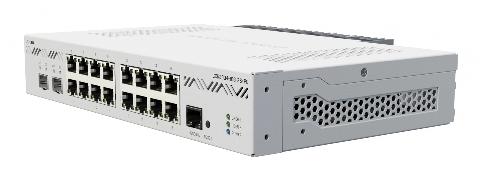 MikroTik CCR2004-16G-2S+PC je profesionalni Cloud Core Router dizajniran za stabilno i brzo usmjeravanje u poslovnim mrežama, podatkovnim centrima i kod pružatelja usluga. Posjeduje 16× 1GbE i 2× 10 Gb/s SFP+ portova za fleksibilne uplinkove, dok moderni 64-bitni ARM procesor i RouterOS pružaju visoke performanse za napredno usmjeravanje, vatrozid, VPN i QoS.