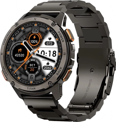 Tražite pouzdan pametni sat? MAXCOM Titan Chronos temelji se na robustnoj metalnoj izradi i čistom, sportskom izgledu. Okrugli zaslon s kontrastnim narančastim akcentima osigurava izvrsnu čitljivost, a ključne informacije o kretanju i zdravlju uvijek su vam pri ruci.