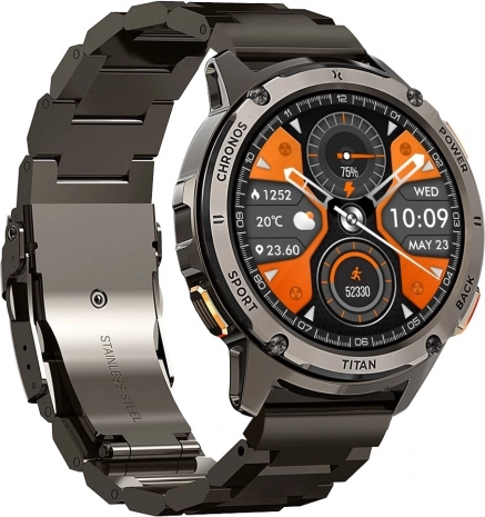 Pametni sat MAXCOM Titan Chronos crni spaja izdržljivu konstrukciju i stilizan sportski dizajn s praktičnošću za svaki dan. Metalno kućište od nehrđajućeg čelika i pregledan zaslon prikazuju vrijeme, datum, korake, otkucaje srca, vrijeme i stanje baterije, dok fizičke tipke omogućuju brzo upravljanje tijekom aktivnosti.