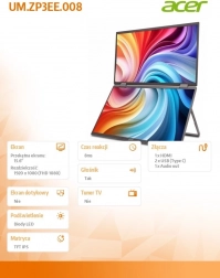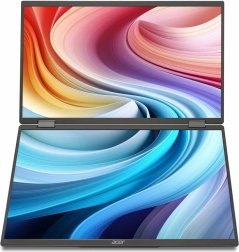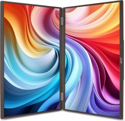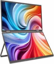 Mobilni dvostruki 16'' monitor ACER donosi udobnost dva zaslona u prijenosnom paketu. Zahvaljujući pametnom zglobnom stalku brzo ga postavite na stol, podesite idealan kut i odmah dobijete više prostora za rad, kreativnost i zabavu.